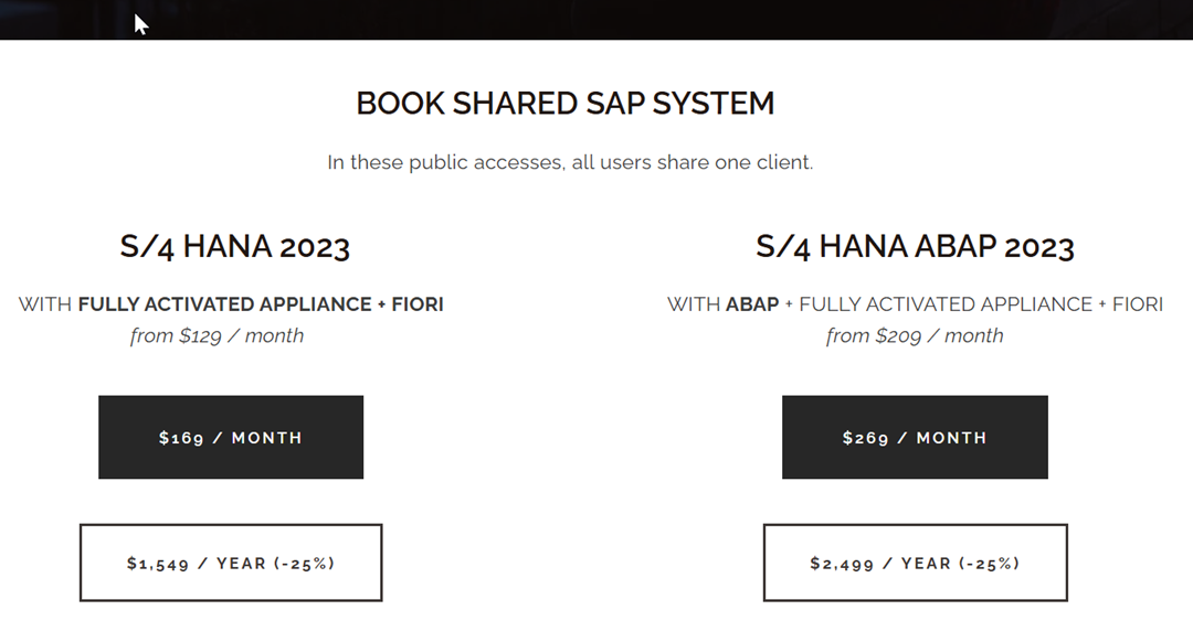 Alternatively, the FFA can also be ordered via SAP CAL (Cloud Appliance Library) but you need an account at one of the big hyperscalers (e.g. Azure, AWS). Running the system there is roughly 4$ per hour. So the hosting alone will cost you around 1k per month if you want to keep the instance up & running 10h per day. On top of this you need a CAL license after the 30-day trial which is at least another 600-700$ per month.